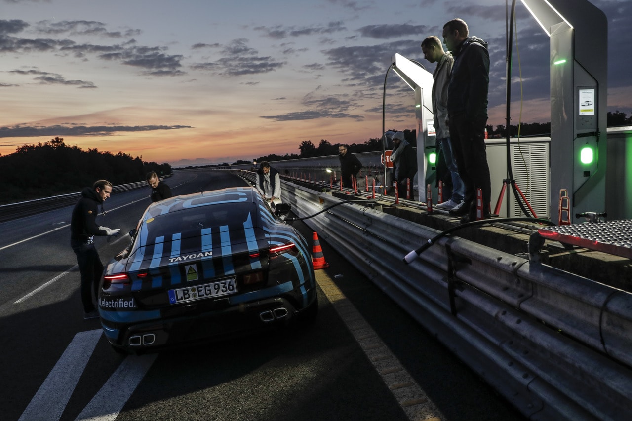 Porsche hat mit einem seriennahen Taycan kurz vor der Weltpremiere am 4. September bei einem Test auf der Hochgeschwindigkeitsstrecke in Nardò (Italien) exakt 3.425 Kilometer innerhalb von 24 Stunden zurückgelegt. Dies entspricht in etwa der Fahrstrecke von Nardò nach Trondheim (Norwegen). Die Fahrgeschwindigkeit bei der Hitzeschlacht auf dem süditalienischen Testgelände lag zwischen 195 und 215 km/h. Bei Außentemperaturen von 42 Grad Celsius in der Spitze sowie einer Asphalt-Temperatur von bis zu 54 Grad Celsius bewies der Taycan-Prototyp seine Langstreckenqualitäten noch vor dem Serienstart. Gefahren wurde ohne Unterbrechung, anhalten musste der Vorserien-Taycan lediglich für schnelle Ladestopps und Fahrerwechsel. Das Team bestand aus sechs Porsche-Testfahrern. Der Test zur Qualitätsabsicherung fand im Rahmen einer Heißland-Dauererprobung statt.