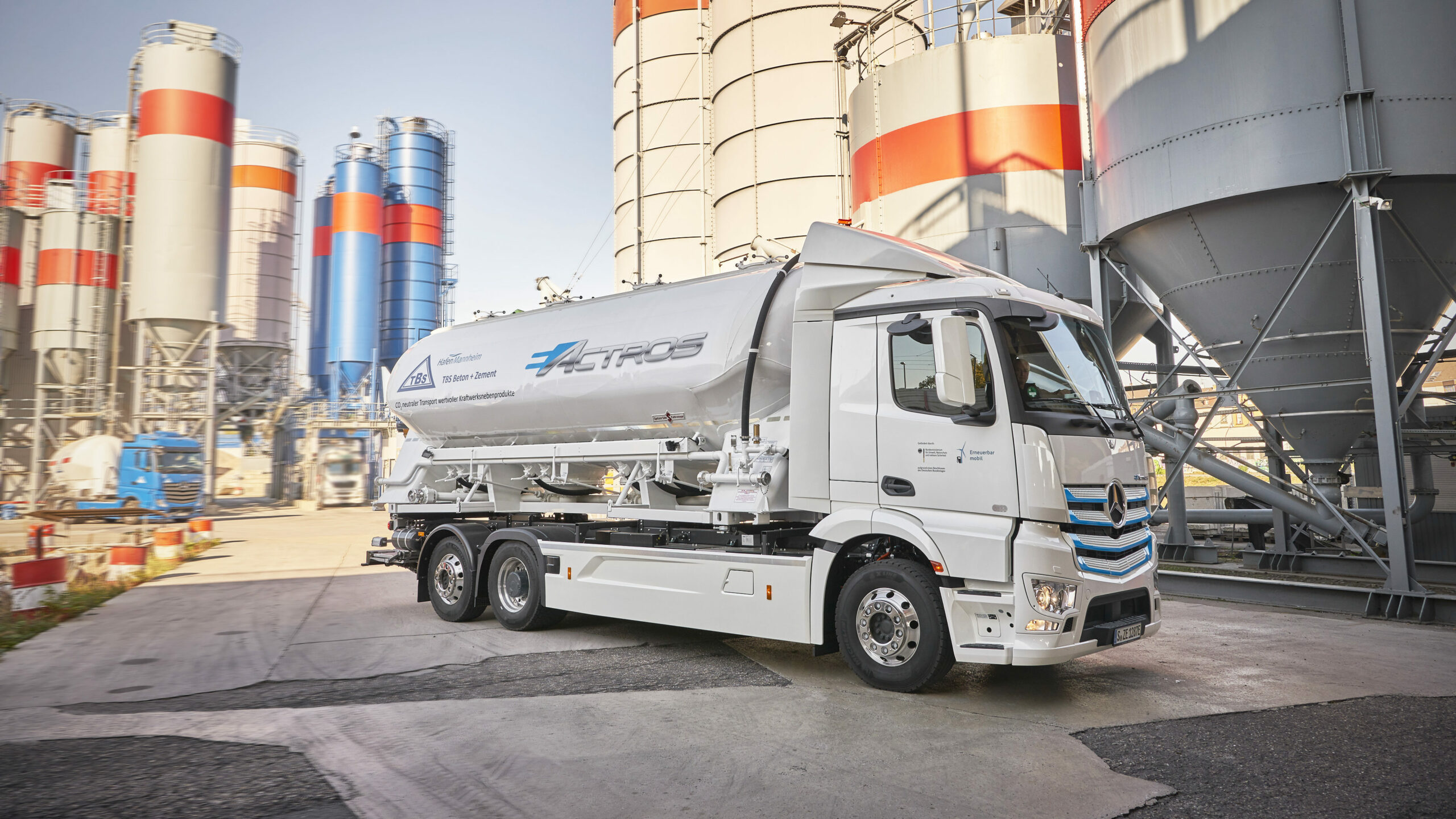 Das in Mannheim ansässige Unternehmen TBS Transportbeton stellt Betone und Bindemittel her und bietet seinen Kunden zusätzlich verschiedene Dienstleistungen an. TBS zählt zu insgesamt 20 Kunden aus unterschiedlichen Branchen, die den schweren Elektro-Lkw in ihre Flotte integrieren. Die Kunden setzen jeweils einen seriennahen 18- oder 25-Tonner ein Jahr lang im normalen Betrieb ein und testen ihn auf seine Alltagstauglichkeit.