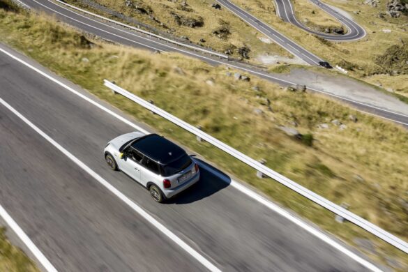 Mal ganz ehrlich: Natürlich sind Fahrer und Beifahrer voll geladen bis hoch gespannt, als sie in Căpățânenii Ungureni, einem idyllischen Dörfchen in Rumänien, in ihren elektrischen Mini Cooper SE (Kraftstoffverbrauch kombiniert: 0,0 l/100 km; Stromverbrauch kombiniert: 16,8 – 14,8 kWh/100 km; CO2-Emissionen kombiniert: 0 g/km) einsteigen. Mit charakteristisch synthetischem Raunen signalisiert der Dreitürer die Bereitschaft seiner Systeme, der unsichtbar T-förmig im Wagenboden gelagerte Akku ermöglicht laut Ladezustandsanzeige „250 Kilometer“ Reichweite. Doch hier, am steilsten Passanstieg Rumäniens? In der Autokultserie »Top Gear« nennt der schrullige Carmaniac Jeremy Clarkson aus England die Transfăgărăşan „die beste Straße der Welt“ – und bewältigt ihre mehr als 1.400 Meter Höhenunterschied mit einer maximalen Steigung von 8,6 Prozent lächelnd in einem üppig motorisierten Supersportwagen. Aber jetzt, der elektrische Kult-Kleinwagen auf den Spuren der Top-Gear-Gang – kann der das?