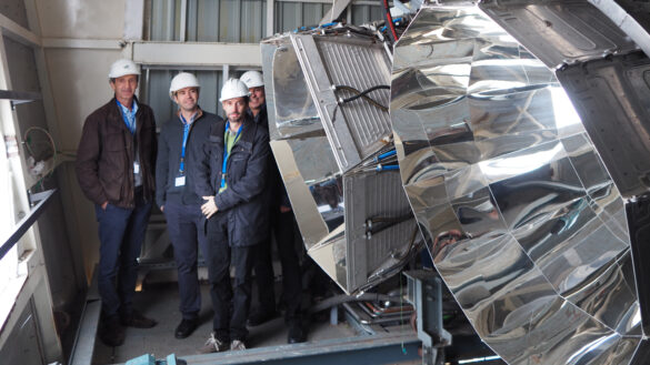 Was noch eine Vision, ist lässt sich schon bald realisieren. Der Reaktor ist zweigeteilt. Die erste Hälfte dient ausschließlich dazu, die konzentrierte Sonnenwärme mithilfe von Luft auf den Reaktor zu übertragen. Diese Hitze lässt sich nutzen, um Wasser zu spalten, also in Wasser- und Sauerstoff zu zerlegen. Denkbar sind auch andere Reaktionen mit dem Ziel, flüssige oder gasförmige Treibstoffe völlig ohne CO2-Emissionen herzustellen. Die zweite Hälfte ist ein Wärmespeicher, der von den konzentrierten Sonnenstrahlen aufgeladen wird.